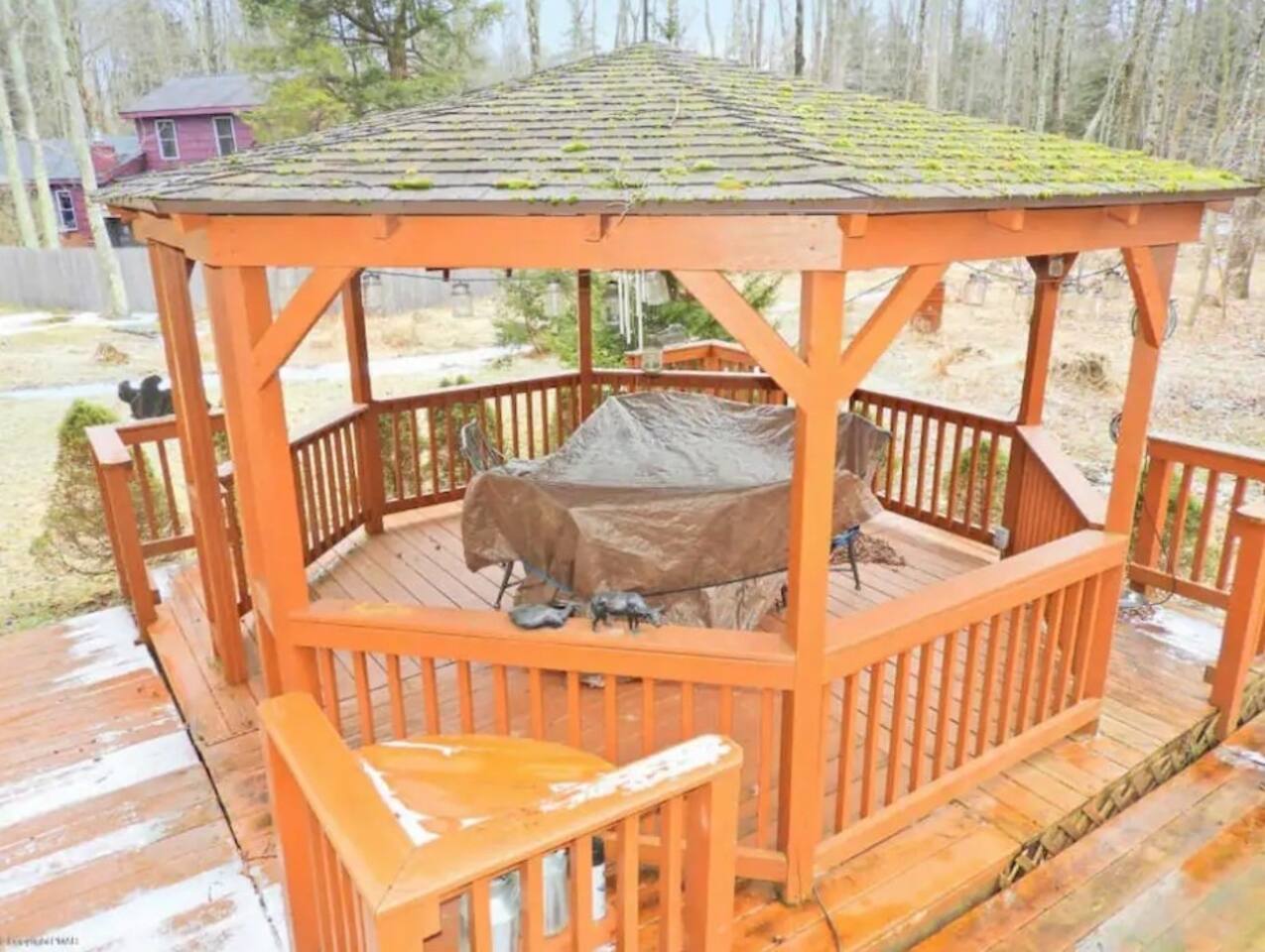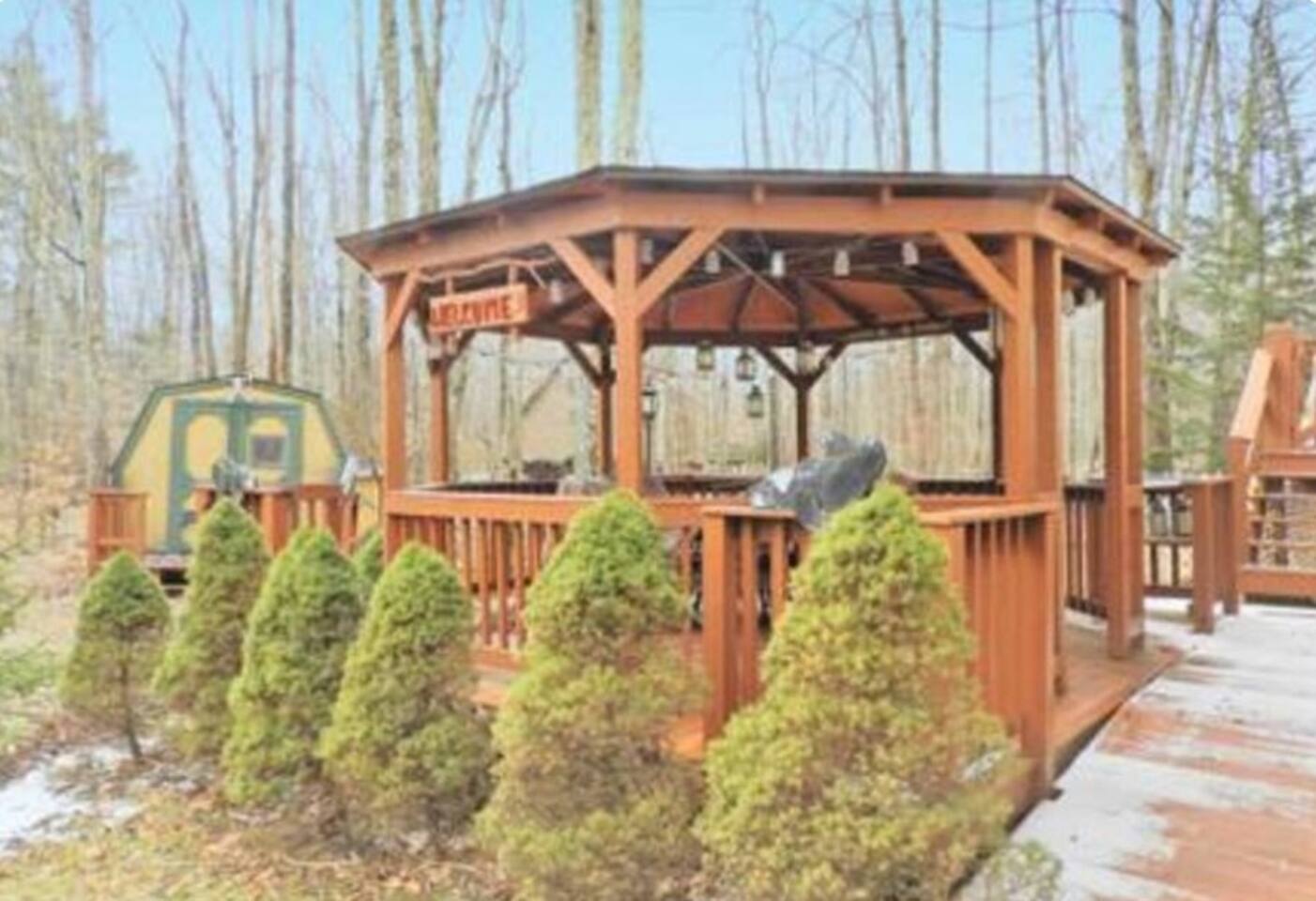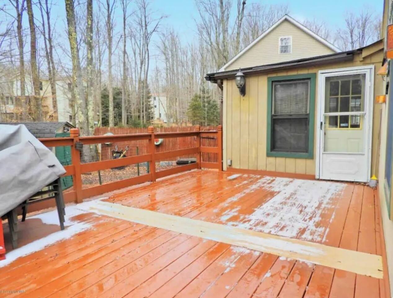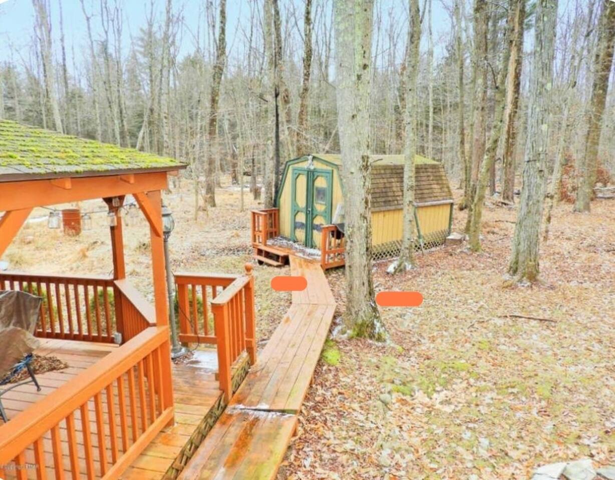 Escape the daily grind and immerse yourself in a serene retreat made just for couples. Nestled in a peaceful cul-de-sac, this cozy hideaway offers the perfect balance of relaxation and adventure—whether you dream of a cozy winter escape or a sun-filled summer retreat. Your Intimate Oasis Awaits: 💤 Comfortable Accommodations for Two: Enjoy access to two cozy bedrooms on the 1st floor: 1 Queen Bed in one room for a romantic night’s sleep. Note: To keep the experience intimate, the 2nd-floor bedrooms will remain closed during your stay. 🍷 Relax, Dine, and Unwind: The open-plan living and dining area, with beautiful hardwood floors, creates a warm, inviting atmosphere for cozy evenings in. A modern, eat-in kitchen equipped with stainless steel appliances makes it easy to whip up a romantic dinner for two or a casual meal with friends. 🌲 Breathtaking Outdoor Bliss: Step outside to your private backyard oasis—perfect for morning coffee or wine under the stars. Dine al fresco on the spacious deck or relax under the rustic gazebo. Knotty pine walls throughout the home capture the welcoming essence of the Poconos, adding to the cozy charm. Exclusive Amenities in a Prestigious Gated Community: Enhance your getaway with access to top-notch amenities (daily fee applies), including: 🏊 Pools for Relaxation and Fun 🎾 Tennis, Volleyball, and Basketball Courts 🌊 Two Lakes for Fishing and Kayaking Affordable Community Access Fees: $20 per car for a gate card. $20 resort transaction fee per stay. High Season (Summer): $8.50 per person/day. Off-Season (Winter/Spring): $2 per person/day. $40 community admin fee per booking. Example: 2 guests for 2 nights in winter or spring = Just $88 in fees. Important: A $100 additional fee applies for bookings made within 3 days of arrival, collected by the community. Book Now for a Romantic Escape You’ll Never Forget! Whether you're cozying up by the fire, enjoying quiet walks, or sipping wine on the deck, every detail of this charming retreat is designed to make your stay unforgettable. Reserve your romantic getaway today and reconnect in the beautiful Pocono Mountains!